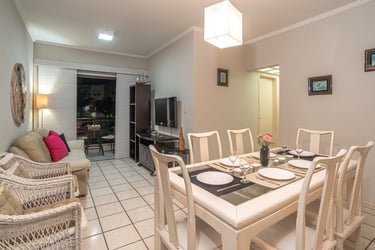 Oferecemos um novo conceito em locações de temporada para você curtir momentos inesquecíveis com familiares e amigos. Com uma decoração acolhedora, nosso apartamento conta com 3 quartos, uma suíte, 2,5 banheiros, ar condicionado, cozinha completa para preparar suas refeições e uma sacada convidativa para relaxar após um dia de aventuras, onde você poderá jogar cartas ou tomar um bom vinho com amigos e familiares.