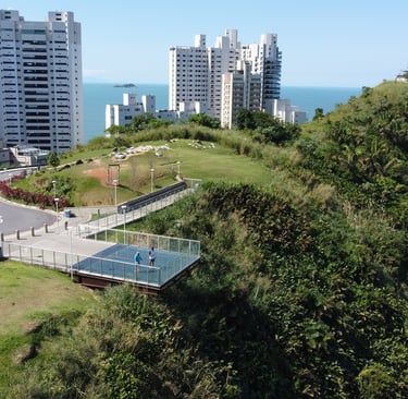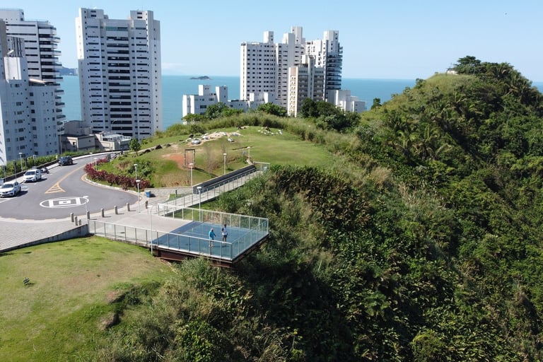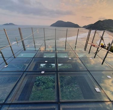 mirante com Sky Glass (piso de vidro) vista impressionante e completa para a praia do Tombo;