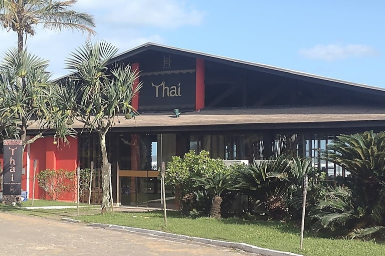Pratos clássicos e criativos da cozinha tailandesa, mais drinques, em espaço elegante com deck e vista do mar.